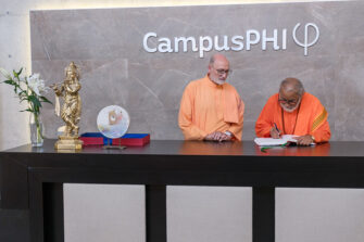 Del 8 al 11 de agosto de 2025, el CampusPHI (Acebo, Cáceres), fue escenario del encuentro “Camino y experiencia de H.E. Pujya Swami Swatantrananda Saraswati Maharaj”, organizado por la Universidad de la Consciencia, dentro del marco del Programa Compartiendo Sabiduría un Acto de Amor.